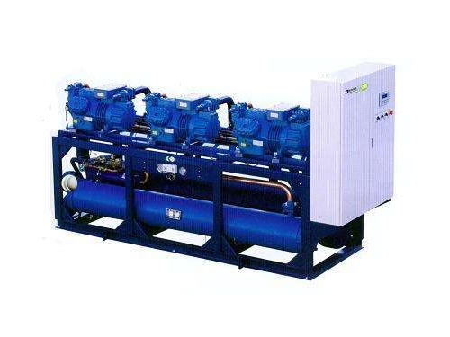 冷水機組的選用應根據冷負荷及用途來考慮。對于低負荷運轉工況時間較長的制冷系統,宜選用多機頭活塞式壓縮機組或螺桿式壓縮機組,便于調節和節能。